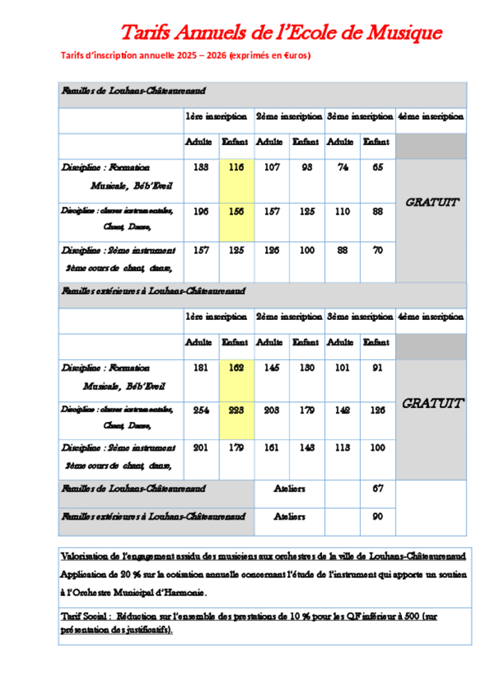 TARIFS ANNUELS 2024-2025